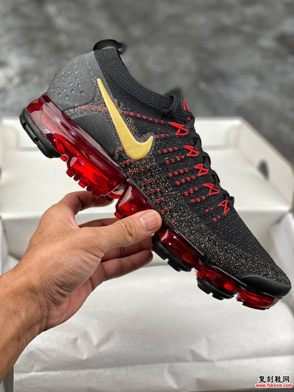 Nike Air VaporMax Flyknit 2.0 二代全掌大气垫百搭休闲运动慢跑鞋 #德产斯托尔针织横机生产原档案针织鞋面 #侧面"鱼骨线"清晰立体 原底气垫 "黑深灰白橘"