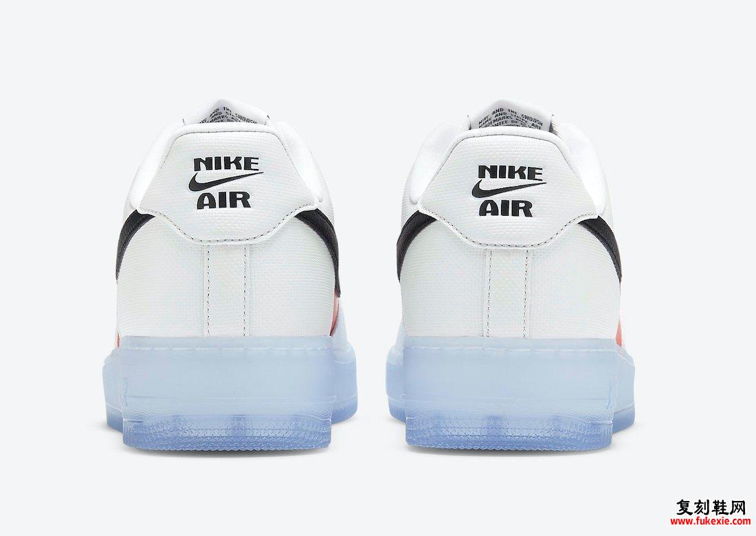 这款Nike Air Force 1鞋面的大部分鞋面均采用白色磨砂皮革制成,鞋跟则用纺织皮革包裹。接下来是侧面板上的红色皮革,而Swoosh徽标上则使用了黑色翻滚皮革。其他细节包括耐克篮球dubraes,而展示篮球网的冰冷外底则为外观增色不少。