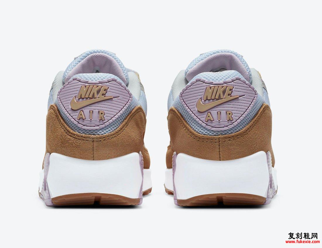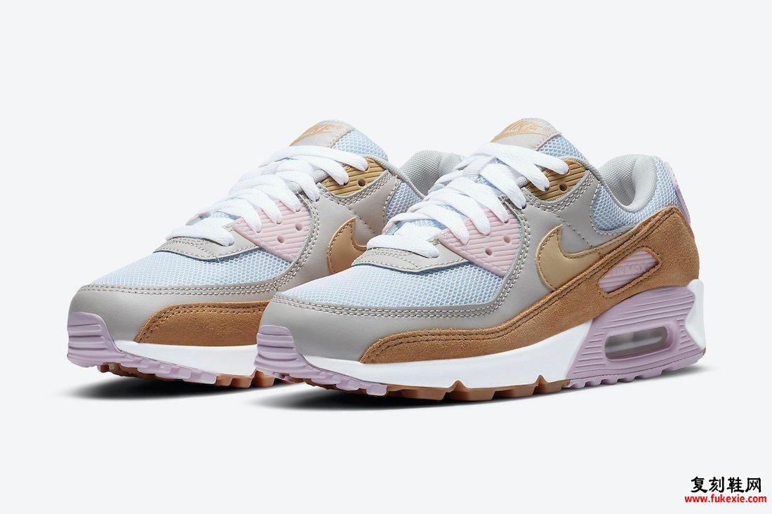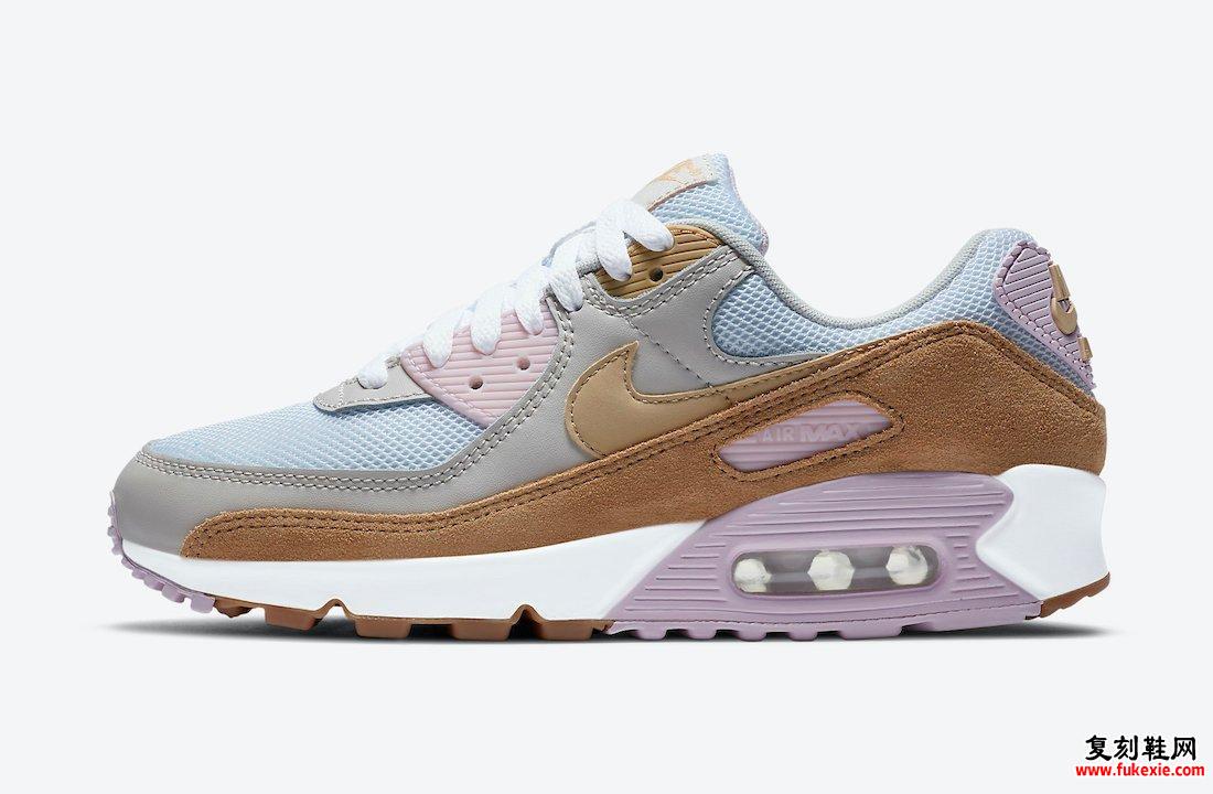 这款Nike Air Max 90鞋面配有浅蓝色网眼,而粉红色细节则遍布整个鞋面。接下来是挡泥板上的棕色绒面革,覆盖层上的灰色皮革,而卡其色则落在Swoosh上。其他细节包括中底为白色,而橡胶底为棕色和粉红色。