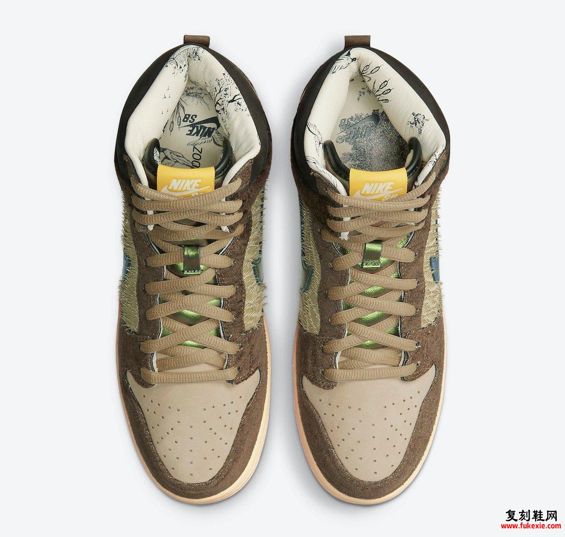 具有藤条,降落伞米色,橙色粉笔和巴洛克棕色配色。仔细观察,这款Nike SB Dunk High使用质感和微妙的细节打造出模仿雄性野鸭外观和感觉的配色。四分之一面板上的毛绒皮革质地像羽毛,而脚后跟附近的模糊材料模仿柔软的羽绒。此外,舌头和Swoosh上的彩虹色皮革类似于绿头鸭的彩色头部和羽毛。Concepts品牌在鞋内栩栩如生,鞋垫和衣领衬里饰有精美的印花。