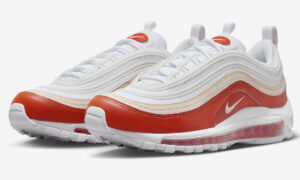 这款Nike Air Max 97女子系列的灵感来自天灯,并具有Sail,红外和白色配色。接下来,这双鞋在Air Max装置上呈现红色到橙色的渐变。