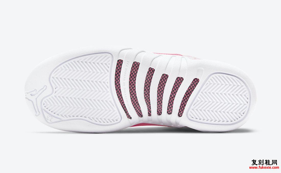 穿着白色,北极打孔和超级粉红色的配色方案。这款Air Jordan 12的浅粉红色裂纹漆面采用白色皮革鞋舌和饰面覆盖了整个鞋面。