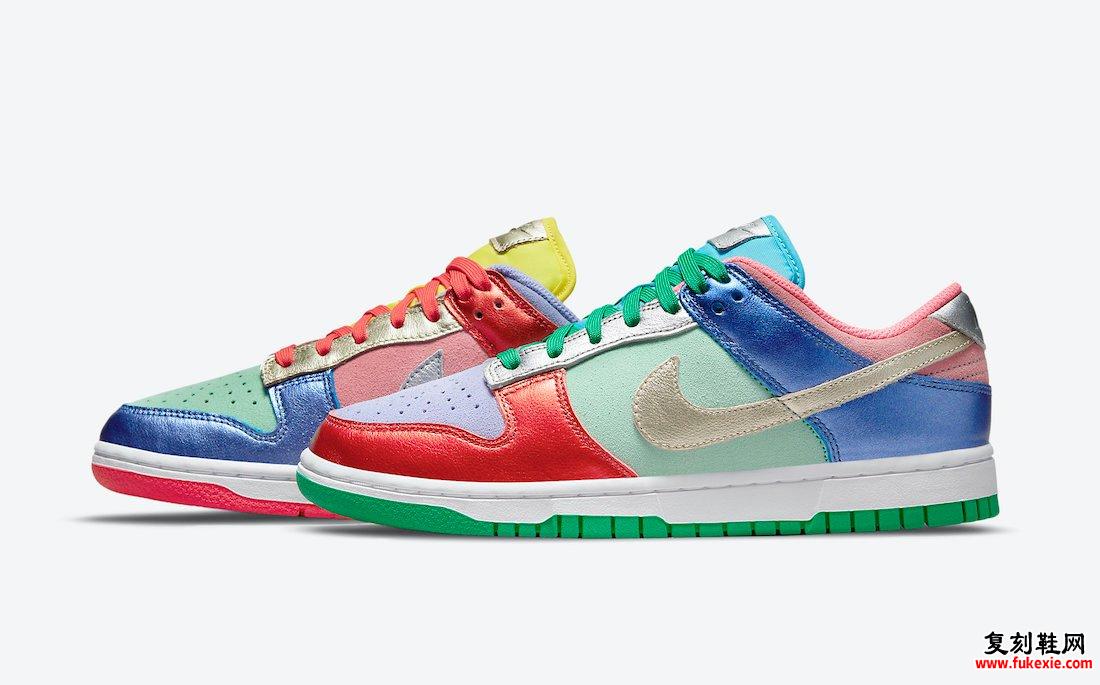 耐克将在今年发布多款Dunk Low配色,其主题不匹配。接下来的几对中,我们要展示的主题具有浮华主题,并带有金属质感。
