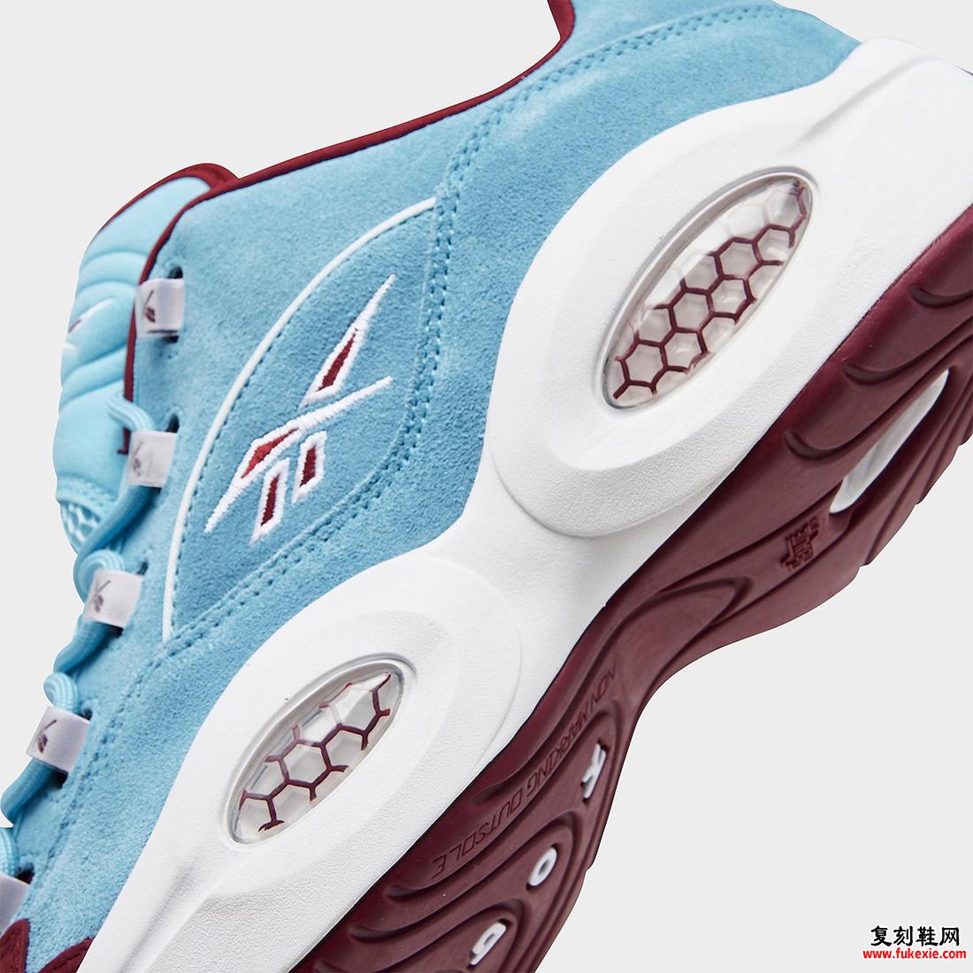 这款Reebok Question Low采用数码蓝、经典勃艮第和白色组合。