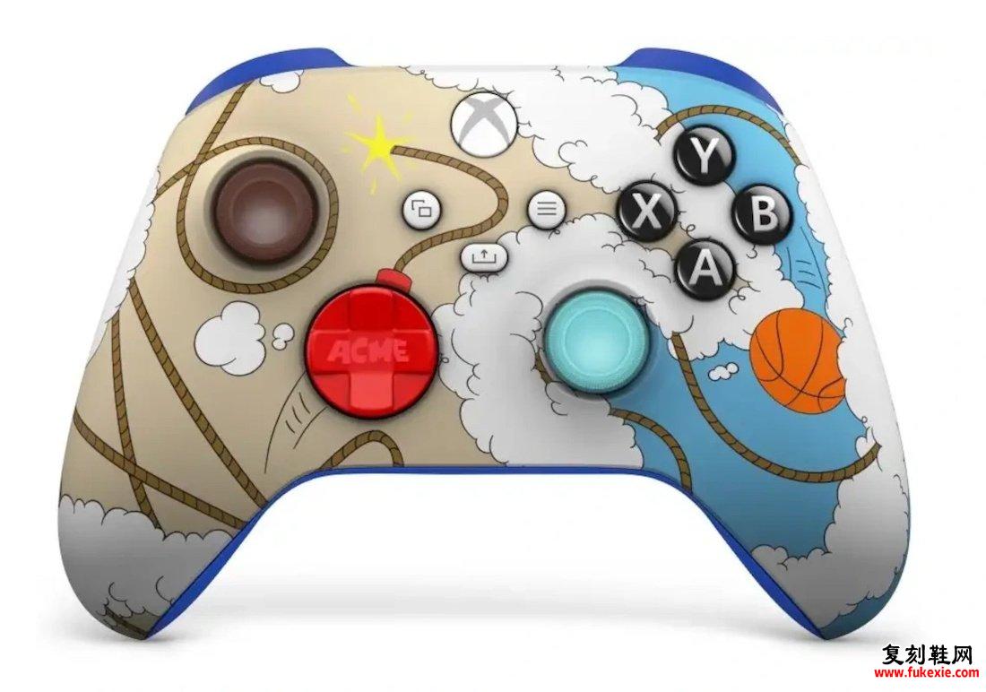 伴随着踢腿的是一个独特的 Xbox 无线控制器,它将鞋子的元素结合在一起——代表了 Wile E. Coyote 和 Road Runner 遭遇的混乱后果。