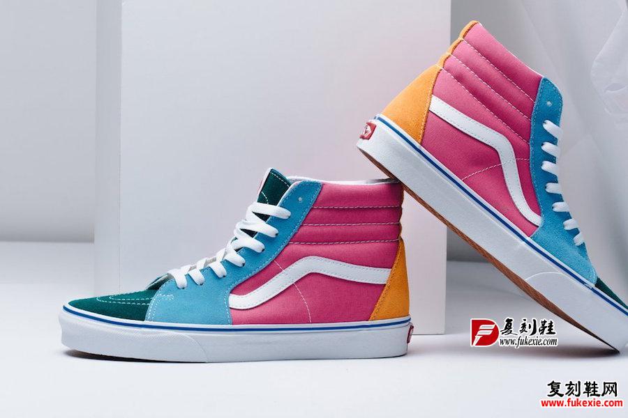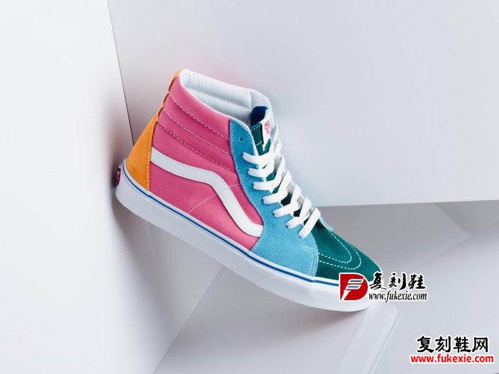 采用了 Vans 经典的 Sk8-Hi 鞋型,在鞋身上注入粉色、蓝色、绿色、黄色,视觉冲击感极强。