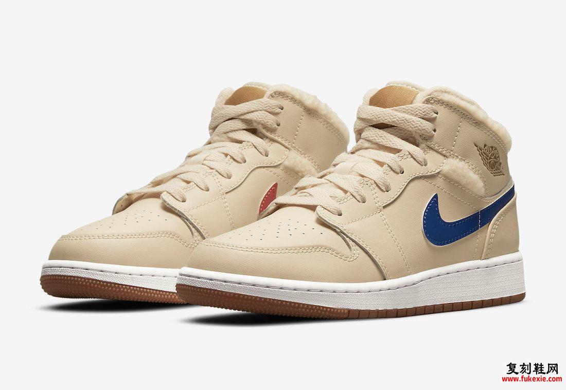 白色中底上的橡胶色鞋舌标签和橡胶外底完善了设计。未来几周将在指定零售商和耐克发售的Air Jordan 1 Mid GS “Fleece” 。零售价标签定为 90 美元。