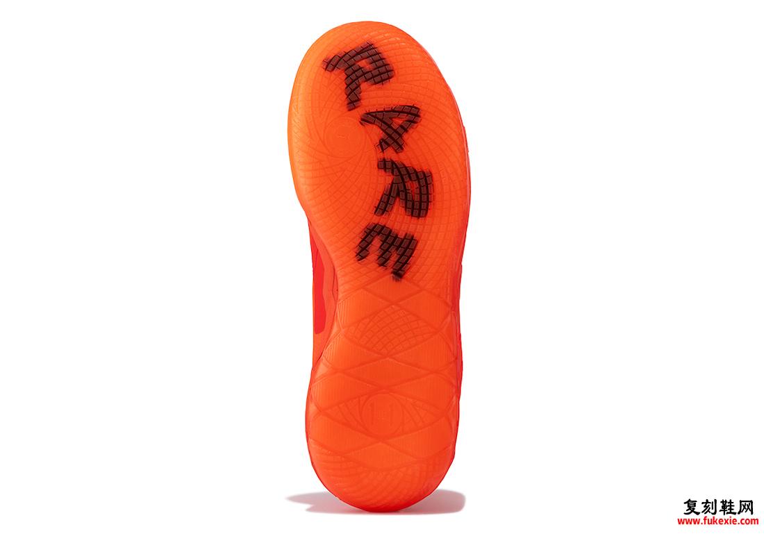 鞋舌包括 LaMelo 的“Not from Here”创意,外底则展示了“rare”一词,描述了他在硬木上的天赋。