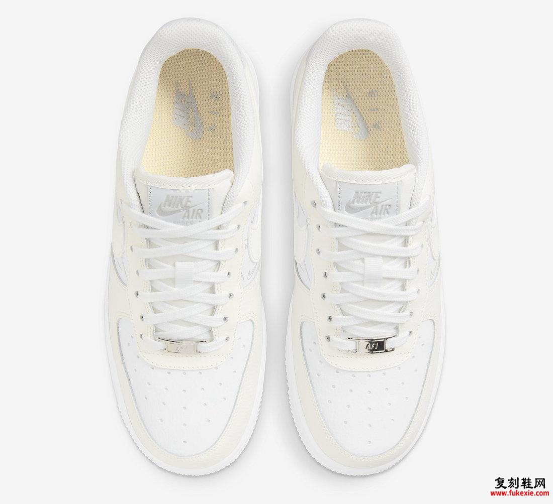 此款Nike Air Force 1 Low采用白色滚花皮革鞋底,搭配 Sail 覆面和 Swooshes。