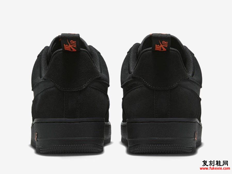 此款Nike Air Force 1 Low采用黑色绒面革鞋底搭配网眼鞋舌,衬里饰有橙色对比色。