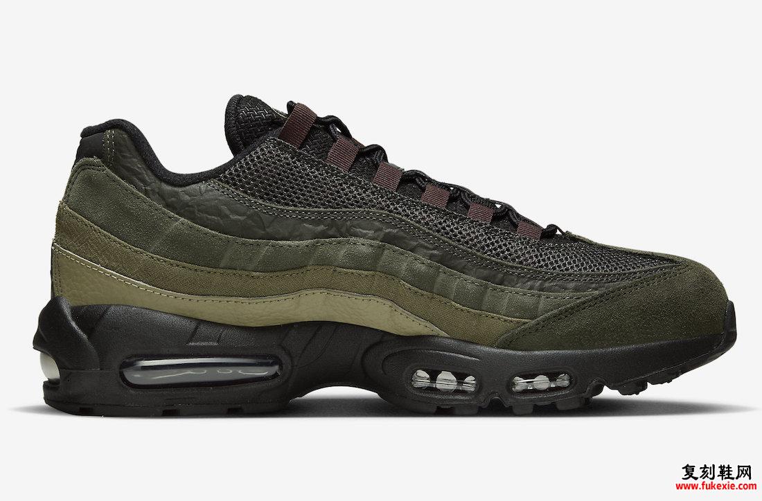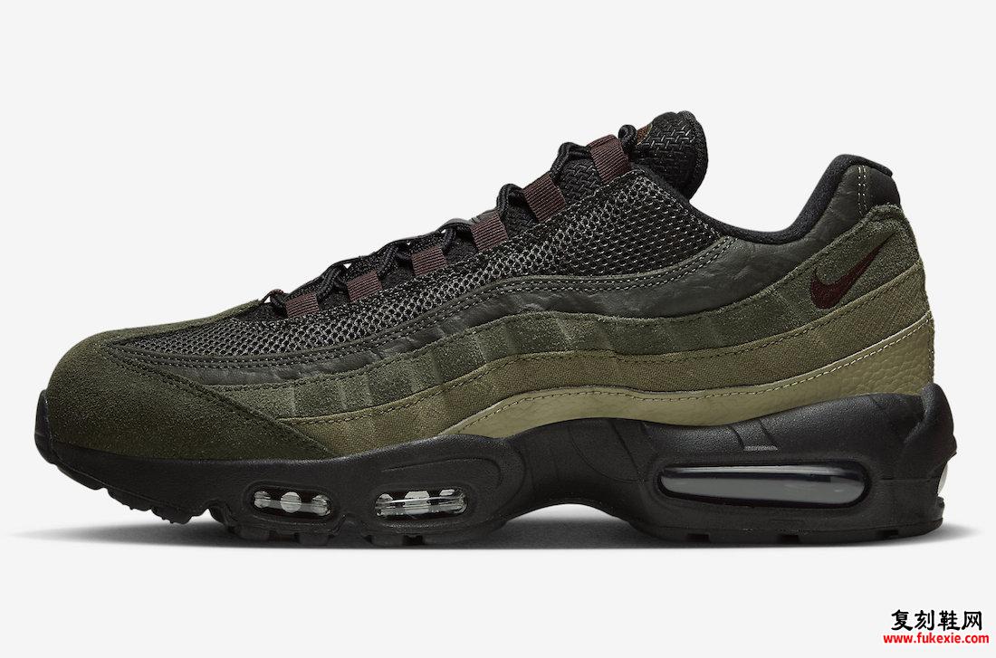 黑色、地球、红杉和货物卡其色方案。Nike Air Max 95的这款产品采用构造网眼、皮革和绒面革材料。它带有 3M 反光提示细节,搭配纯黑色橡胶鞋底。