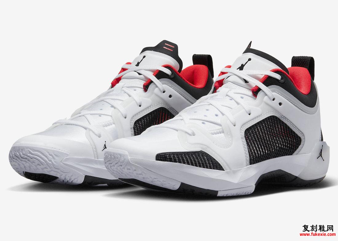 此款低帮Air Jordan 37采用白色、黑色和警笛红配色,搭配红外线对比色。虽然所有规格尚未正式公布,但它采用皮革制成,侧板采用网眼设计,可提供额外的通风效果。