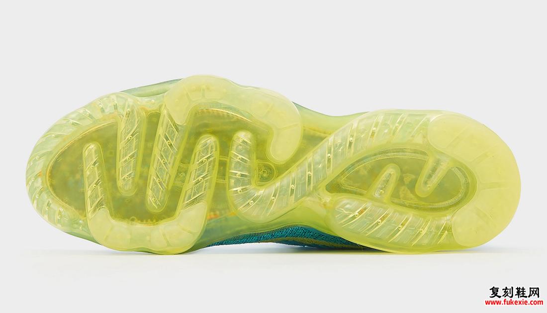 波罗的海蓝、柠檬色和深渊绿配色方案。Nike Air VaporMax 2023的这款产品采用传统的 Flyknit 构造,采用回收材料,鞋垫上印有耐克的风车标志。全长 VaporMax 鞋底单元两侧和外侧前脚掌上的 Swoosh 标志完善了设计。