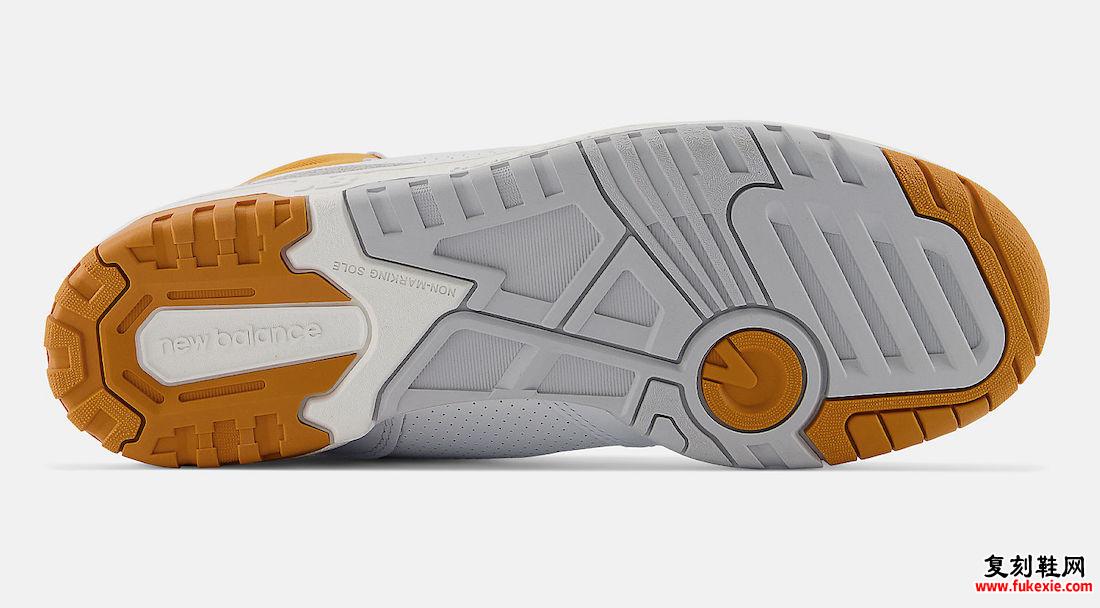 白色和峡谷配色方案。New Balance 650的这款产品采用白色光滑和穿孔皮革鞋面,整体采用金黄色对比色和网眼衣领。