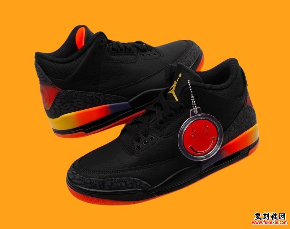 Air Jordan 3 “Rio” 将采用时尚的黑色、太阳耀斑和 Total Crimson Abyss 颜色组合。这双鞋采用黑色皮革底座,鞋头和鞋跟上饰有灰色大象印花。其他细节包括渐变中底、带有 J Balvin 标志的半透明鞋跟标签。纪念里约热内卢的独特元素也将出现。