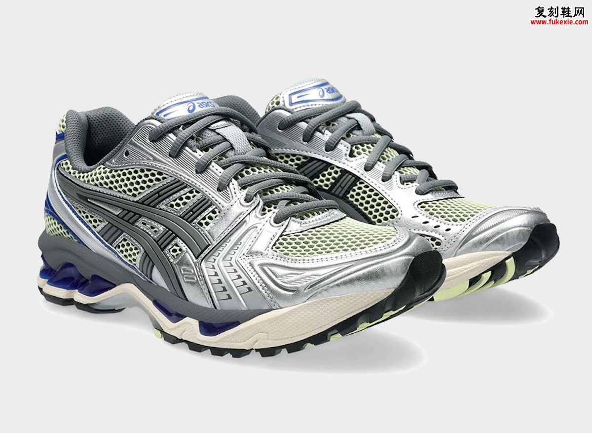 Gel-Kayano 14 采用醒目的蕨类绿色进行改造。这种颜色覆盖了合成皮革覆盖层和透气的网眼鞋面。以自然为灵感的颜色引人注目,提供清新而现代的外观。宝蓝色外底增添了活力,与整体设计形成鲜明对比。