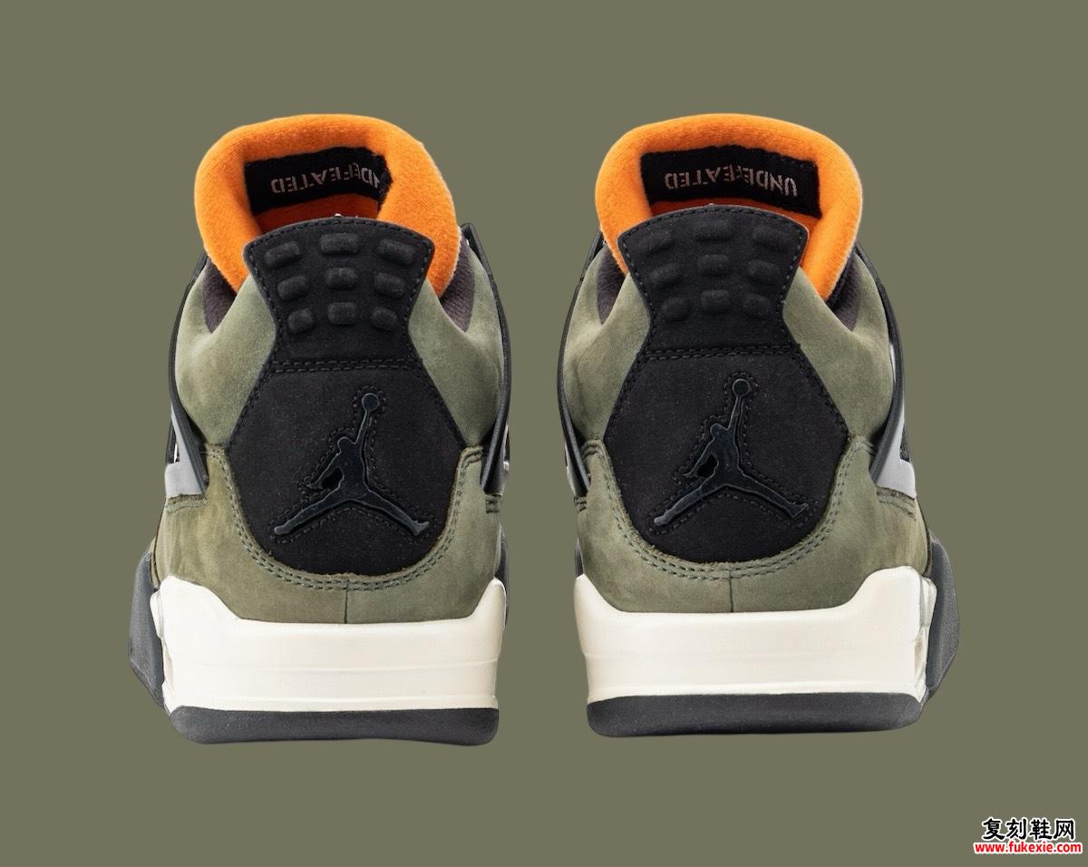 2025 年重新发布的 UNDFTD x Air Jordan 4 将忠于原版。它将采用相同的橄榄绿色绒面革鞋面、橙色和黑色细节,以及鞋跟上的 Undefeated 标志。独特的 Velcro 鞋舌贴片(类似于军用飞行夹克贴片)也将回归。