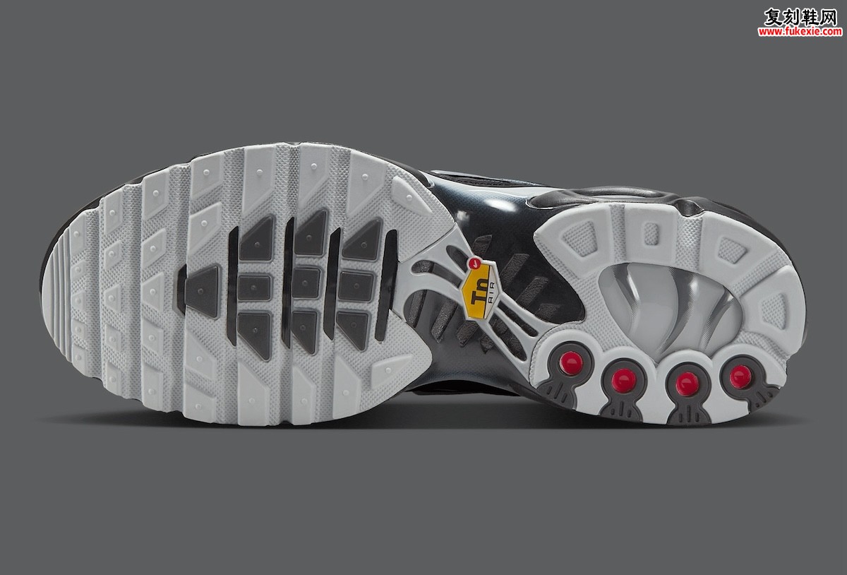 Nike Air Max Plus "Black/Wolf Grey" 将于2025年夏季重磅回归,以商务休闲风格颠覆传统运动鞋设计。这款鞋融合狼灰色透气网面鞋身与闪亮黑色笼状覆层,标志性的波浪线条轮廓赋予其极高辨识度,即便在都市街头也能瞬间吸引目光(设计灵感源于1998年首发的革新性Tuned Air技术,复刻细节致敬经典)。深色调主题贯穿整体:烟熏色可视化气垫单元嵌入黑色中底,营造出低调神秘的氛围;而镀铬Swoosh标志与鞋带孔环的金属细节,则成为点睛之笔,巧妙平衡商务质感与未来主义美学。