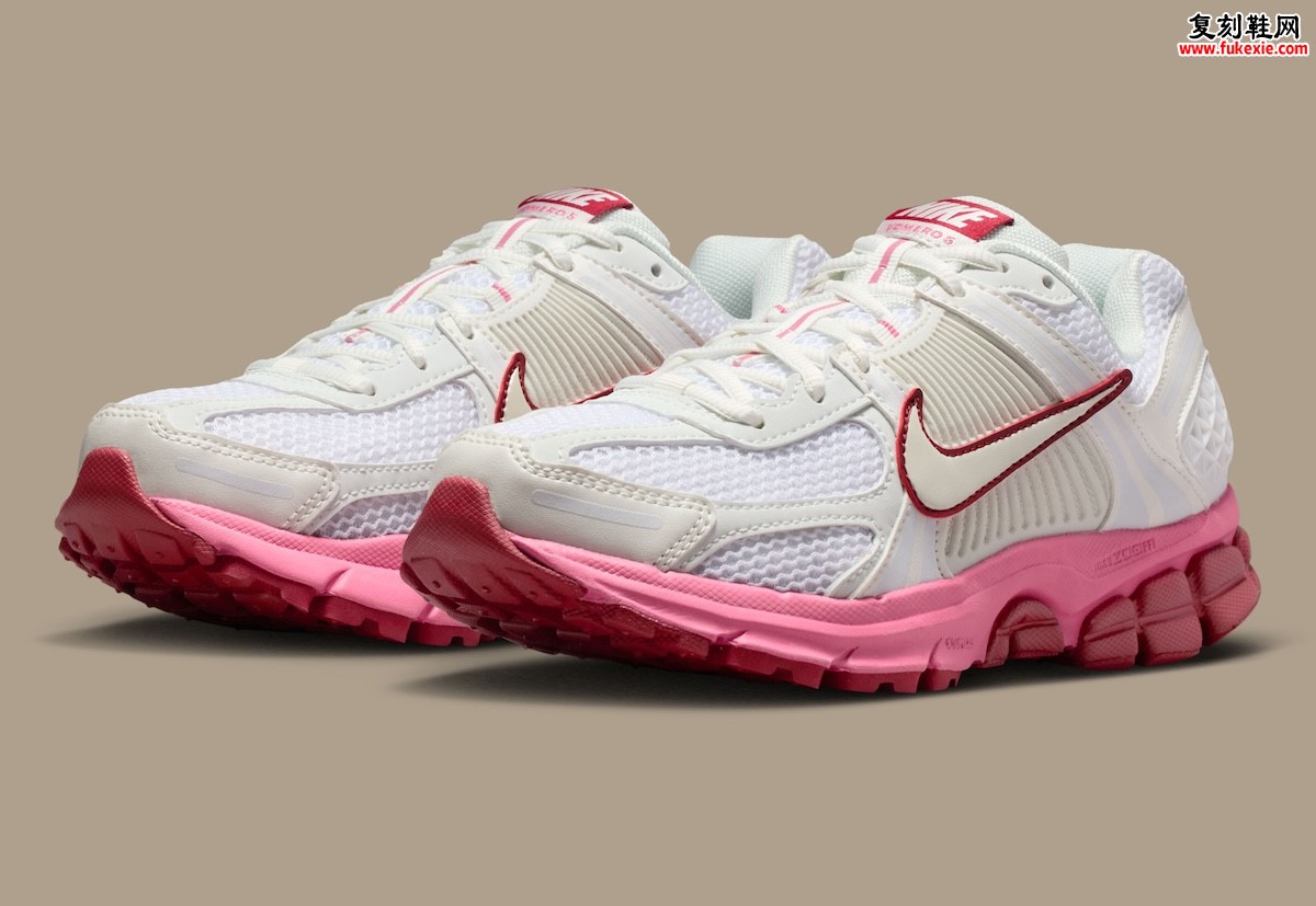 Vaquera的设计完全摒弃了安全牌。鞋身采用光亮的纯白基底,上面泼洒着遍布全身的鲜红色口红印迹。这种设计并非精致的点缀,而是一种刻意为之的“混乱”与“痕迹”,瞬间塑造出一种兼具新鲜感与叛逆色彩的“坏女孩”气质。侧身的Swoosh标志被处理成燃烧般的炽红色,进一步加剧了视觉上的冲突与不安定感。唯一的合作标识被低调地安置在鞋舌——一枚椭圆形的Vaquera徽章。而鞋底部分,DN8标志性的八气室缓震结构得以完整保留,仿佛在提示:无论上身如何颠覆,其核心依然是最尖端的运动科技。