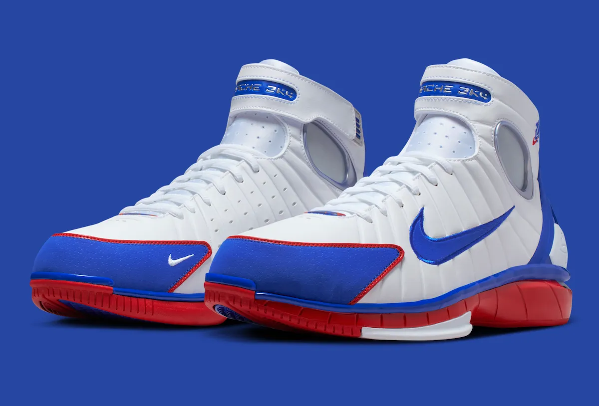 这款“Tinker Alternate”配色最直观的突破,在于其彻底跳脱了公众熟知的经典红、白、蓝奥运主题布局。鞋身采用大面积白色皮革,与深邃的“深皇家蓝”色块相结合,形成了色调上重大转变。这种配色方案不仅带来了更强烈的视觉对比,其色块分割也更具图形设计感与现代性。它是一双极为出色的AJ7替代配色,同时散发出与元年版“奥运”配色略微不同的能量场,恰恰忠实反映了该鞋型在设计初期的多种可能性探索。